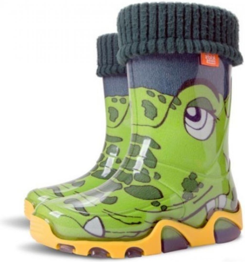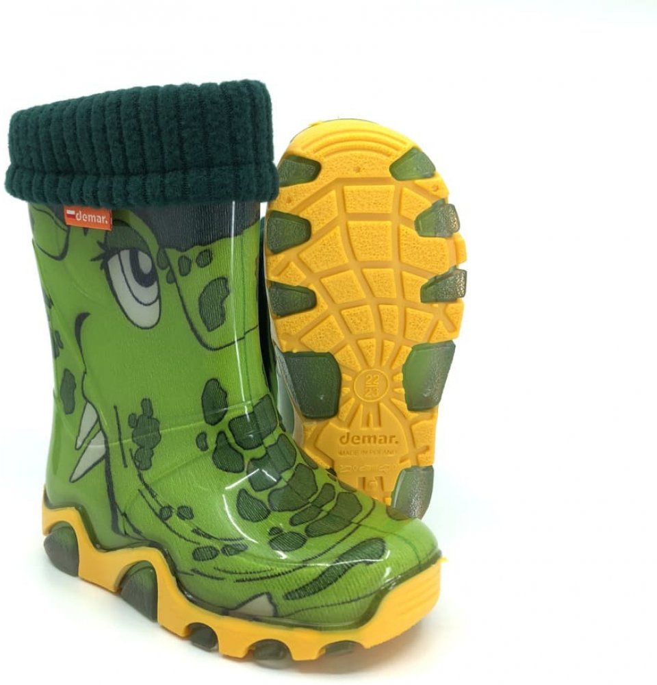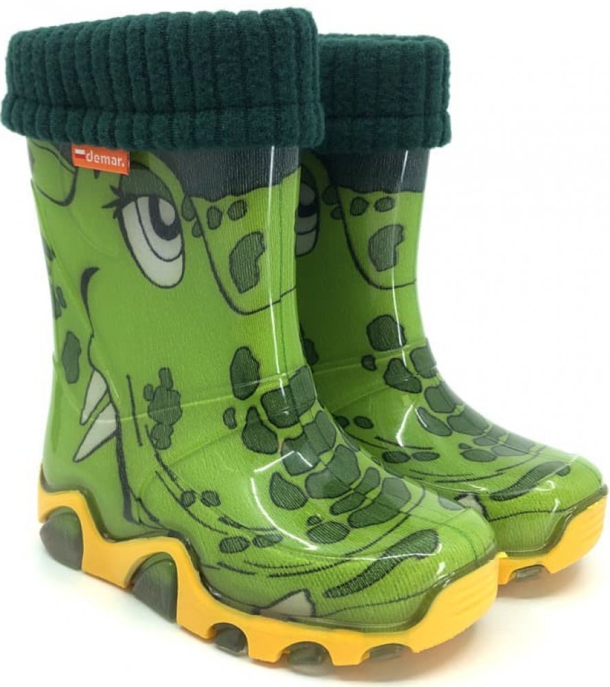Dětské holínky Demar jsou ideální pro deštivé letní a podzimní počasí. Mají hrubší protiskluzovou podrážku zajišťující bezpečnost chůze.