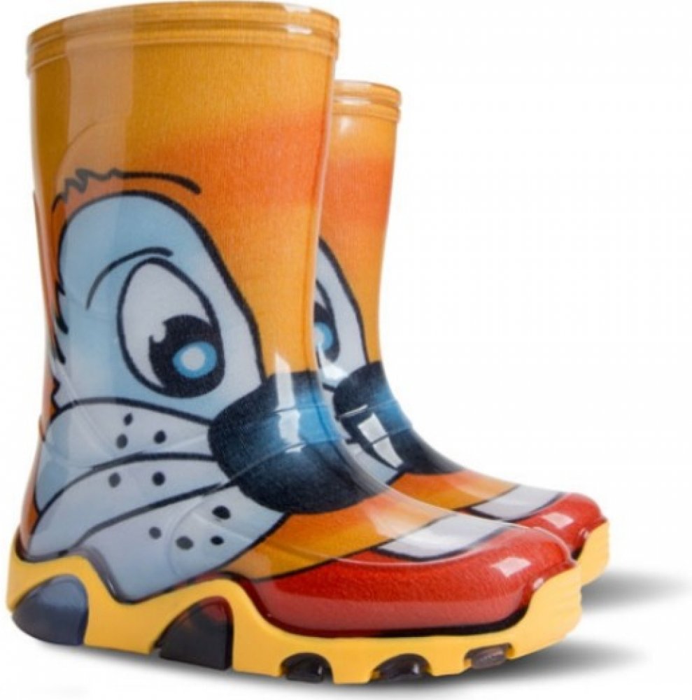 Dětské barevné holínky demar STORMER PRINT jsou ideální pro deštivé letní počasí. Barva holínek je oranžová s imitací kočky. Mají hrubší protiskluzovou podrážku zajišťující bezpečnost chůze. Holínka je velice pohodlná a lehká. Materiál je vysoce kvalitní a odolné PVC podšité příjemnou textilií. Na patě obuvi je bezpečnostní reflexní pásek pro dobrou viditelnost dítěte ve tmě.