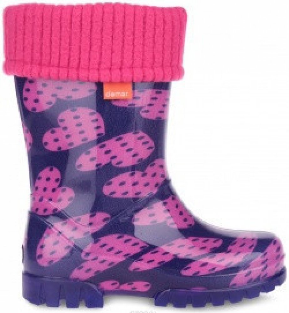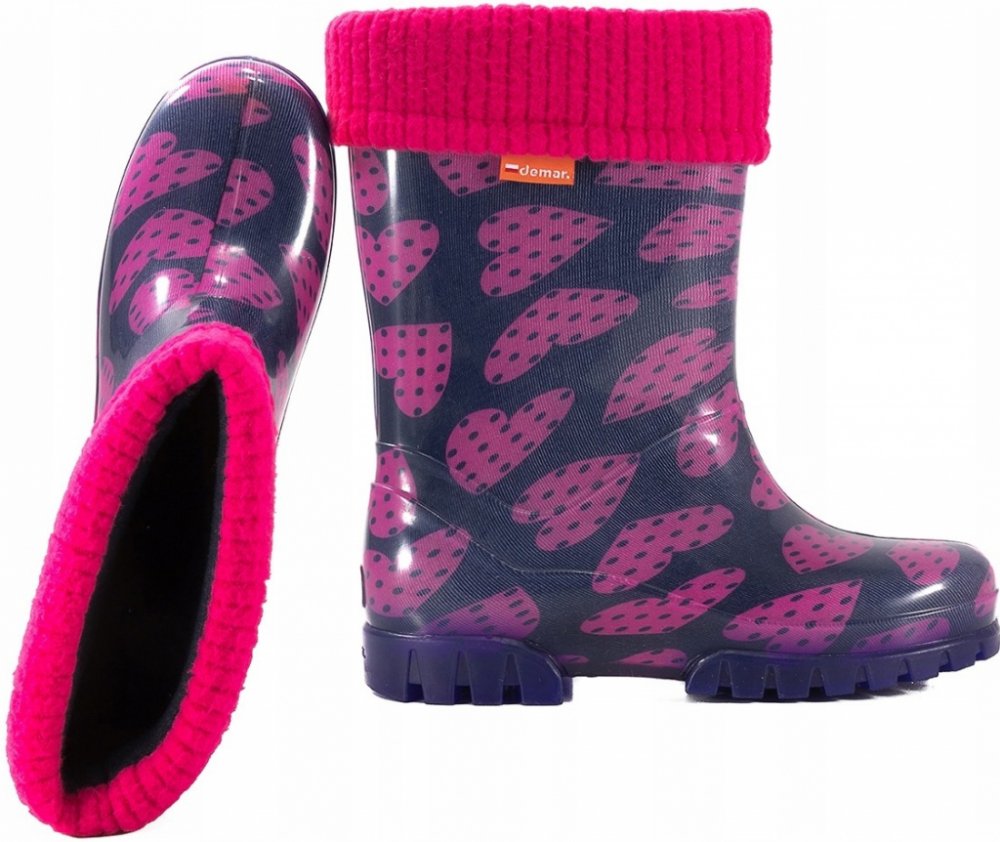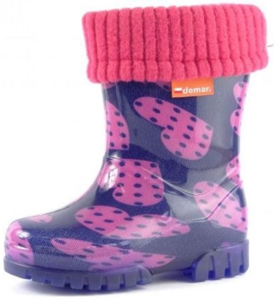 Dětské holínky Demar jsou ideální pro deštivé letní a podzimní počasí. Mají hrubší protiskluzovou podrážku zajišťující bezpečnost chůze.