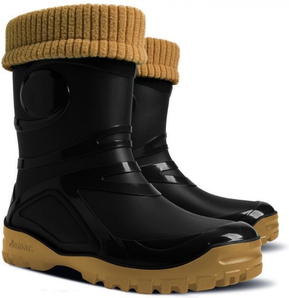 Dámské nízké zateplené holínky Demar YOUNG 2 FUR BLACK jsou ideální volbou do deštivého a chladného počasí. Barva holínek je černá. Gumáky jsou vyrobeny z kvalitního a odolného PVC v kombinaci s vyjímatelnou vložkou z ovčí vlny, díky které jsou velice pohodlné a teplé. Holínky mají hrubší vzorek podrážky, který přispívá k bezpečnosti chůze. Gumáky 0462 mají certifikát - označení CE.