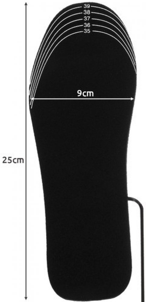 Vyhřívané vložky do bot se snadnou montáží - stačí je ostříhat na požadovanou velikost ze strany špičky. Velikost stélky snadno přizpůsobíte velikosti boty. Na vložce je vidět čára řezu spolu s velikostí. Vložky z UHLÍKOVÉHO VLÁKNA - vyrobeny z příjemného pružného a pěnového uhlíkového vlákna. Vyznačují se vysokou mechanickou pevností. Poskytnou lehkost a dodatečné odpružení pro vaše nohy. Vícenásobné použití a čistitelné - součástí je také omyvatelný a opakovaně použitelný uhlíkový materiál odolává chemikáliím, proto je vhodný k dezinfekci a deodoraci. Vložky čistíme vlhkou houbou a po umytí je před použitím osušte. BEZPEČNÉ POUŽÍVÁNÍ - napětí vložek je 5V, takže je hluboko pod bezpečnostním napětím pro lidské tělo. Nošení vložek je zcela bezpečné i ve vlhkých podmínkách. Technická specifikace: Materiál: pěnové uhlíkové vlákno teplota ohřevu: Max. 55℃ univerzální velikost: 35-40 Napájení USB čištění vlhkou houbou před použitím vysušte voděodolný: ano doba ohřevu: 3-5 min možnost nastavení velikosti: ano napětí: 5V rozměry: 25 /9 cm tloušťka: 0,5 cm hmotnost: 0,074 kg hmotnost v balení: 0,082 kg