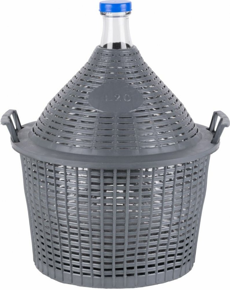 Demižon skleněný 20l Cada Inco slouží pro uchování tekutin jako (víno, destiláty, mošty). Plastový koš s dvěma uchy chrání před nežádoucím poškození. Rozměry: objem 20 litrů, 485x390/305 mm, průměr hrdla 38mm. Plastová zátka je součástí demižonu.