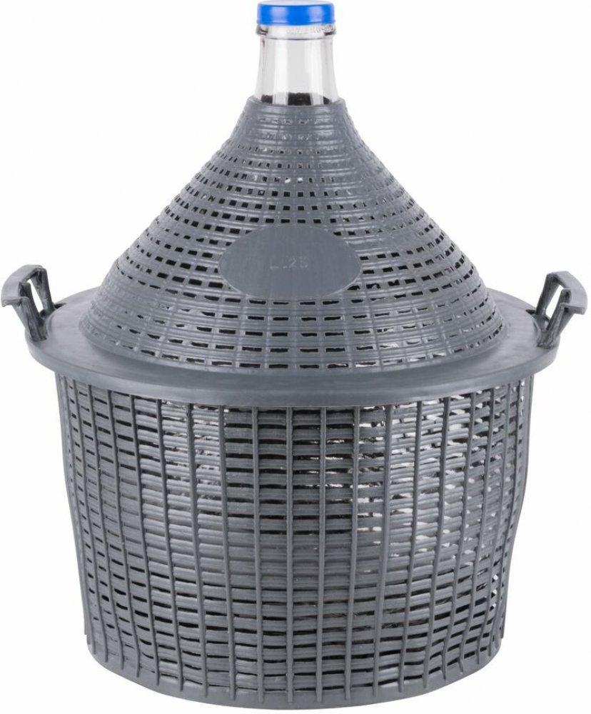 Demižon skleněný 25l Cada Inco slouží pro uchování tekutin jako (víno, destiláty, mošty). Plastový koš s dvěma uchy chrání před nežádoucím poškození. Rozměry: objem 25 litrů, 520x415/330 mm, průměr hrdla 38mm. Plastová zátka je součástí demižonu.