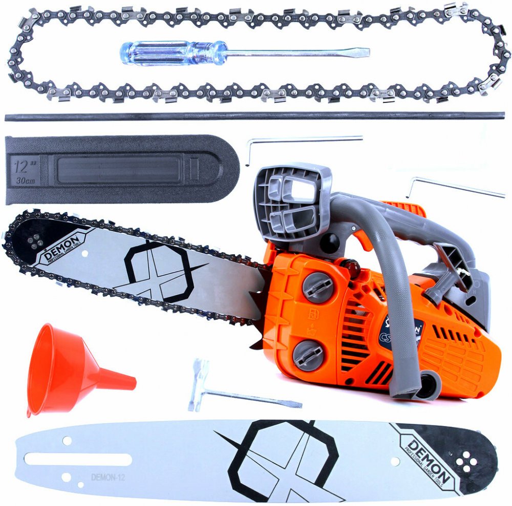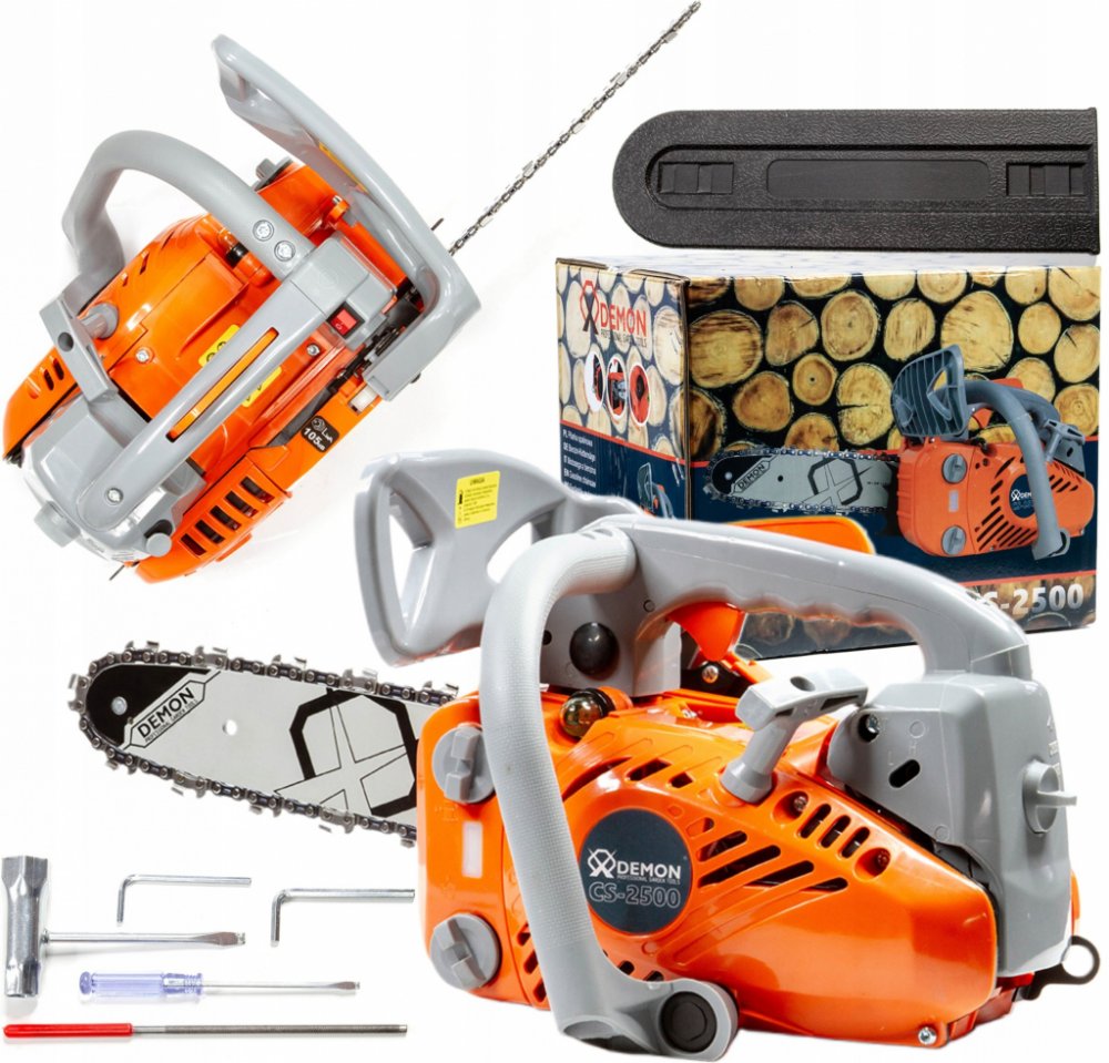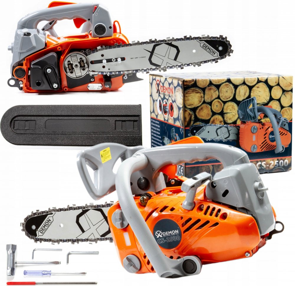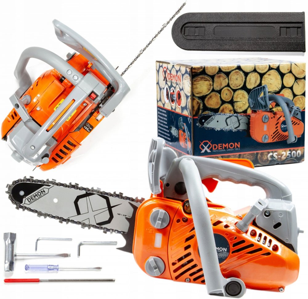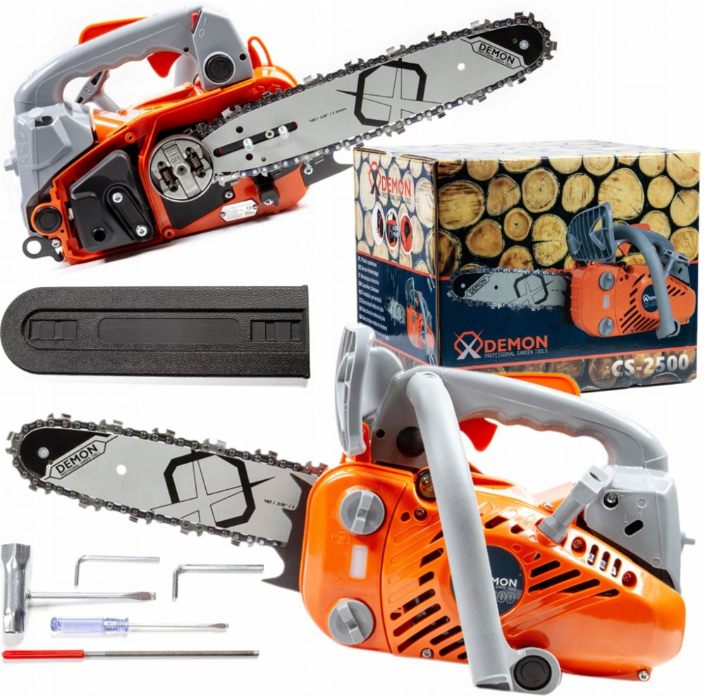 Profesionální řetězová pila DEMON® CS-2500 je nepostradatelným zařízením pro každého zahradníka jak amatérského, tak i profesionálního. Je vybavena funkcí automatického mazání řetězu. Díky kompaktní a lehké konstrukci malých rozměrů lze pilu použít i v obtížných místech. Je vybavena speciálním chráničem rukou a rukojetí, díky níž ji lze zavěsit na opasek.