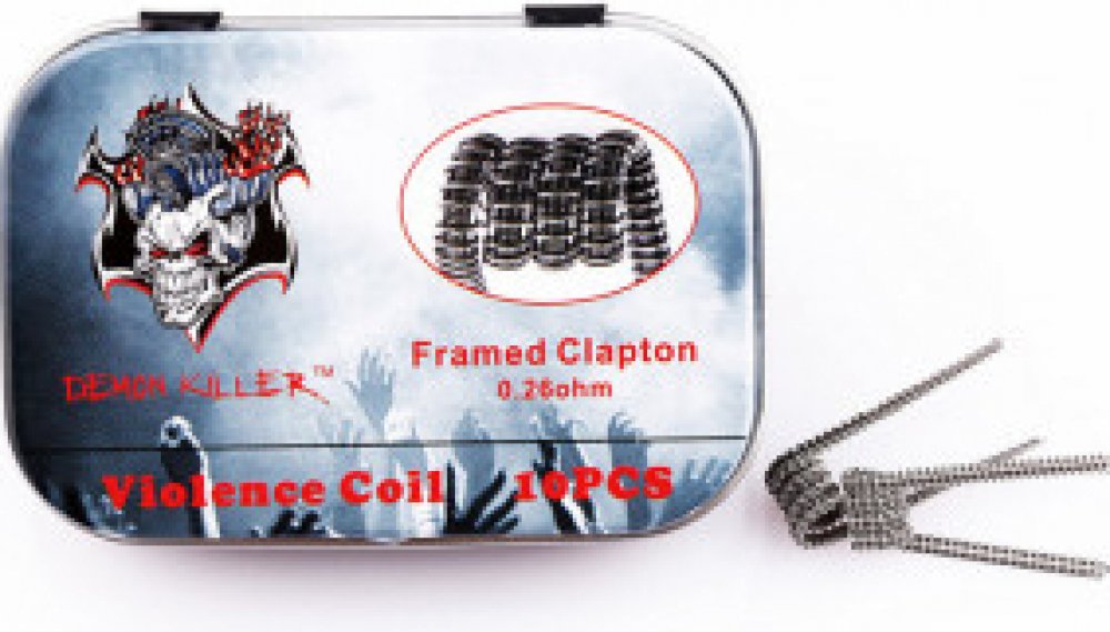 Předmotané spirálky Kanthal Violence v provedení Framed Clapton jsou vhodné pro nízkoodporový vaping a cloudchasing, tedy velkou tvorbu páry. Spirálky v provedení Framed Clapton jsou tvořeny odporovými dráty z kanthalu a nerezové oceli SS316L. Vnitřní průměr spirálky je 3 mm. Odpor jedné spirálky je 0,26 ohm.