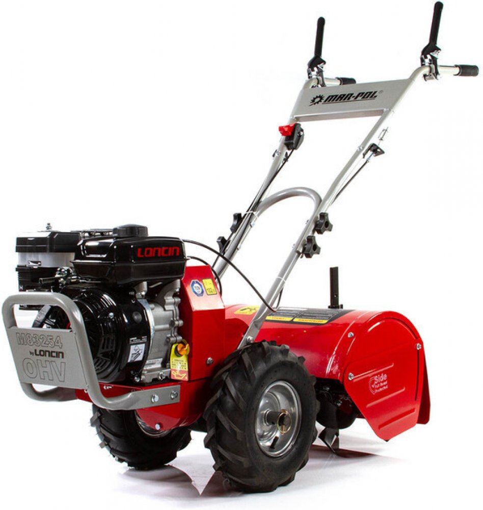 Rotavátor DEMON Loncin H-200Rotavátor DEMON Loncin H-200 je výkonný a spolehlivý stroj, který je ideální pro intenzivní práci s půdou na velkých plochách. S jeho pomocí můžete půdu snadno připravit pro různé druhy plodin během celé sezóny – od jara až do podzimu. Na podzim lze stroj využít také k zapracování kompostu nebo hnojiva do půdy a k její přípravě na zimní období. Rotavátor je vybaven pevným kovovým rámem a širokými velkými koly, které jsou připraveny zdolávat nerovný terén. Má silný motor značky Loncin, odolnou železnou převodovku a je vybaven komponenty, které zajišťují delší životnost a pohodlnou práci – kvalitním vzduchovým filtrem olejového typu, pákou na regulaci plynu a přívodu vzduchu, palivovým kohoutem s pozicí ON/OFF, senzorem stavu oleje a vypínačem zapalování ON/OFF. Hloubku orání půdy lze přizpůsobit pákou umožňující nastavení pracovní hloubky. Poskytuje tak možnost vícestupňové regulace podle individuálních potřeb. Stroj je také vybaven 12 ostrými noži umístěnými na 4 osách, které umožňují práci do maximální hloubky 35 cm při pracovní šířce 48 cm. Bezpečnost práce zajišťuje ochranný kryt nožů a možnost nastavení rukojeti do tří různých poloh pro optimální držení a ergonomii. Technické údaje:Značka: DEMON®Motor: OHV, 4ventilový, horní ventilPřevodovka: červíkováTyp motoru: benzínový LONCIN H200, objem 196 cm3Jmenovitý výkon motoru: 6,5 HPMaximální výkon motoru: 4,1 kW/3600 ot./minObjem motoru: 196 cm3Typ startéru: ručníRegulace rychlosti: anoMaximální hloubka práce: 17,5 – 35 cm (nastavitelná)Šířka rotavátoru: 50 cmPracovní šířka: 48 cmTyp kol: nafukovacíNastavitelná výška řídítekKapacita palivové nádrže: 3,6 lKapacita olejové nádrže: 0,6 lPočet nožů: 12 kusů – kalené (4 sady)Hmotnost zařízení: 72 kgBalení obsahuje: rotavátor DEMON Loncin H-200, sada příslušenství, sada nářadí na obsluhu, olej pro první naplnění motoru 0,6 l 4T, převodový olej 80W-90