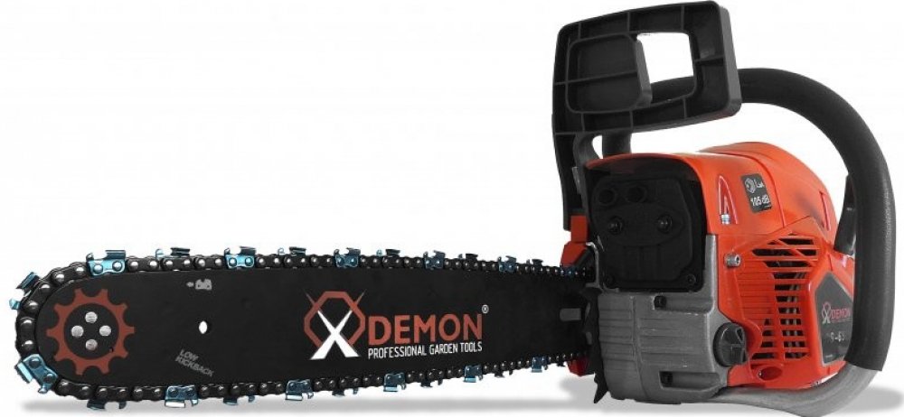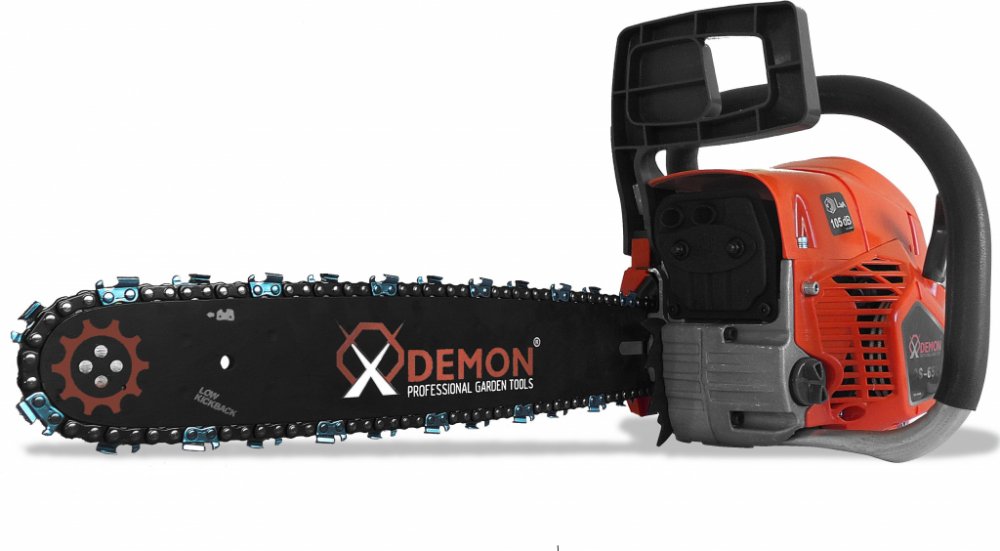 Benzínová řetězová pila DEMON je vysoce efektivní a komfortní nástroj, který může být použit v lese, zahradě, ovocném sadě apod. Je vybavena výkonným 2-taktním motorem.
