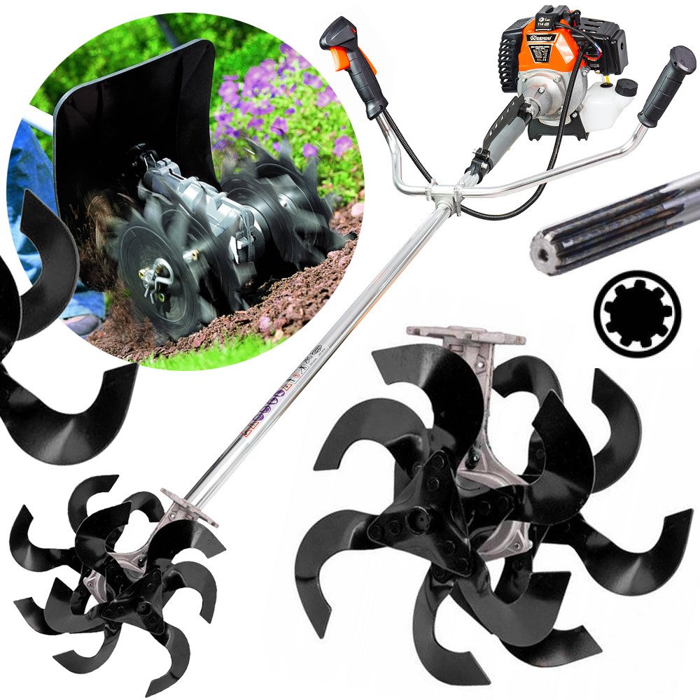Tímto praktickým nástavcem z vašeho křovinořezu vytvoříte účinný kultivátor a rozšiříte jeho schopnosti. Kultivátorem si dokážete ušetřit každoroční dřinu ve vaši zahradě při obdělávání záhonů. Pomocí nožového ústrojí, které rotuje v půdě, rozruší ztvrdlou zeminu a provzdušní půdu. Malá velikost rotačního kultivátoru umožňuje přesné kopání úzkých míst bez rizika poškození již vysazených rostlin.Velmi dobré pro kultivaci květinových záhonů a malých zeleninových zahrad.