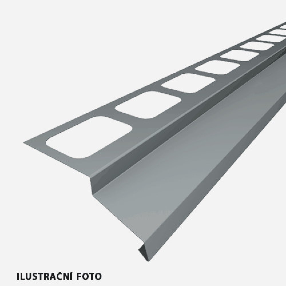 Pro lepší prostup lepicího tmelu je profil na horní straně hrany děrovaný. Jednoduché řešení na rohu balkónu, teras a lodžií.