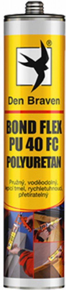 Den Braven BOND FLEX PU 40 FC - Polyuretanový tmel a lepidlo pro univerzální použití v interiérech i exteriérech. Tento moderní produkt je navržen pro lepení a tmelení spojů v různých stavebních aplikacích. Vyznačuje se schopností vytvrzovat vulkanizací vzdušné vlhkosti, čímž vzniká odolná elastická guma. Je ideální pro profesionály jako jsou zedníci, klempíři, pokrývači, mechanici, elektromontéři...