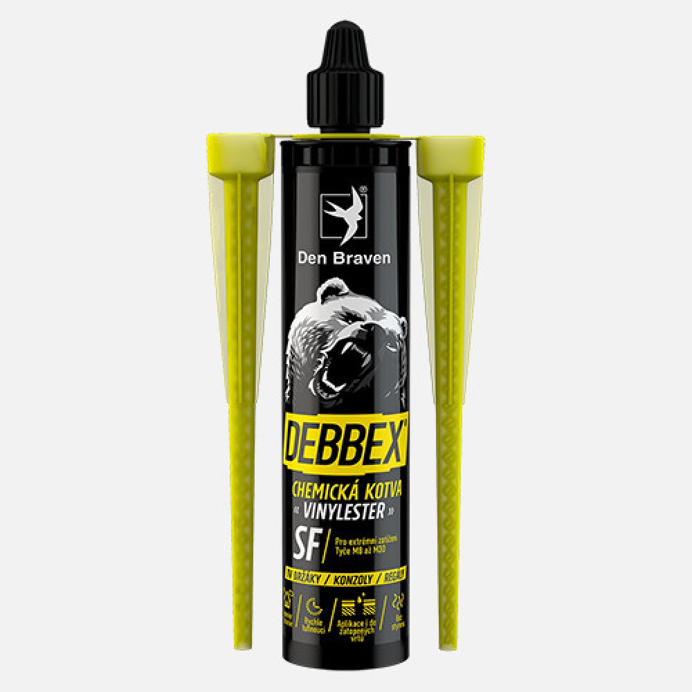 Chemická kotva na bázi vinylesterových pryskyřic umožňuje kotvení do všech typů podkladů při teplotách až do +40 °C. Snadno tak lze kotvit do podkladů z betonu, tvárnic, plného zdiva, dutých cihel, přírodního kamene a lehkého betonu i v těch největších vedrech. Vhodná pro extrémní zatížení a uchycování dřevěných nebo ocelových konstrukcí, fasádních prvků, sportovních zařízení, lešení, patek zábrad...