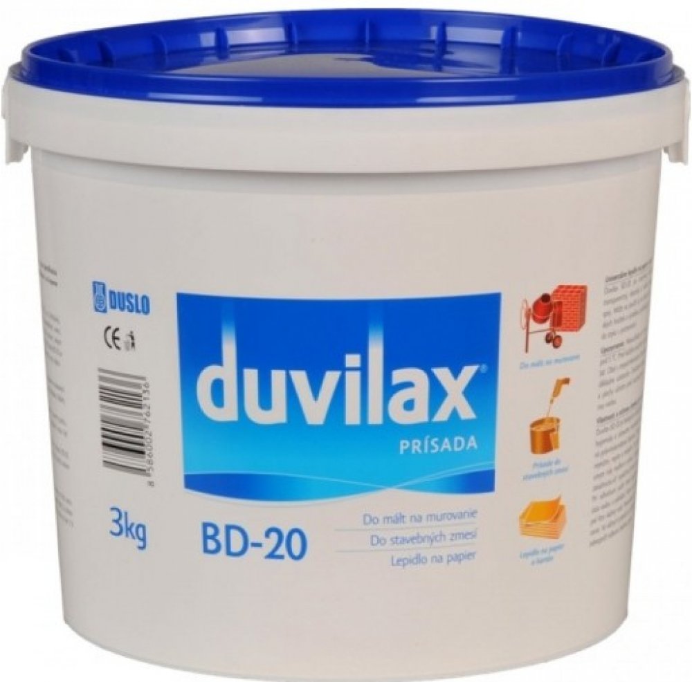 DUVILAX BD-20 je vhodný pro výrobu interiérových nátěrových látek a jako plastifikační a provzdušňovací přísada do zdících malt, omítek, cementových potěrů a dalších stavebních směsí, v množství do 5 % na hmotnost cementu či vápna. Po zředění v poměru 1:4 se hodí i jako penetrace nadměrně savých podkladů před lepením disperzními lepidly, malováním v interiérech nebo nanášením disperzních stěrek. Bez ředění lze DUVILAX BD-20 používat jako lepidlo na lepení textilních tapet či jako univerzální disperzní lepidlo v papírenském a polygrafickém průmyslu. V textilním průmyslu se používá k tužení nití a textilií.