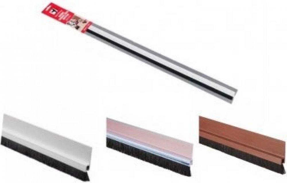 Dveřní těsnicí lišta JOLYFLEX je protiprůvanová a protiprachová samolepicí lišta. Sníží vnikání prachu do bytu a zabrání průvanu ("meluzíně" pode dveřmi při větrném počasí). Lišta je vhodná pro hladké i mírně nerovné podlahy. Kartáč je vyroben z jemných nylonových vláken zalisovaných do ocelové drážky. Lišta je 1 m dlouhá a je určena pro zakrytí spáry pode dveřmi do 16 mm. Délku lišty lze upravit....
