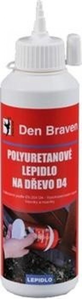 Pro lepení plošných spojů s požadavkem odolnosti proti povětrnostním vlivům a teplotním výkyvům např. lepení dřevěných kazet do venkovních vchodových dveří apod. Jednosložkové lepidlo na bázi polyuretanu, vytvrzující absorpcí vzdušné vlhkosti, vytvářející pevný a vodovzdorný spoj. Lepení veškerých dřevěných konstrukcí, sendvičových hranolů a trámů, rámů oken a dveří, lepení veškerých dřevěných konstrukcí a staveb. Přibližná spotřeba lepidla 120 - 250 g/m2.Detailní informace k výrobku, postupy, hodnoty atd. jsou uvedeny v technickém listu.https://dokumentace.denbraven.cz/?p=03+Lepidla%2FPolyuretanove%CC%81+lepidlo+na+dr%CC%8Cevo+D4