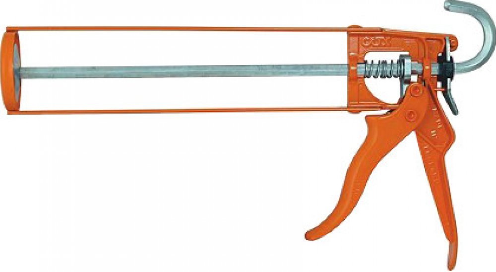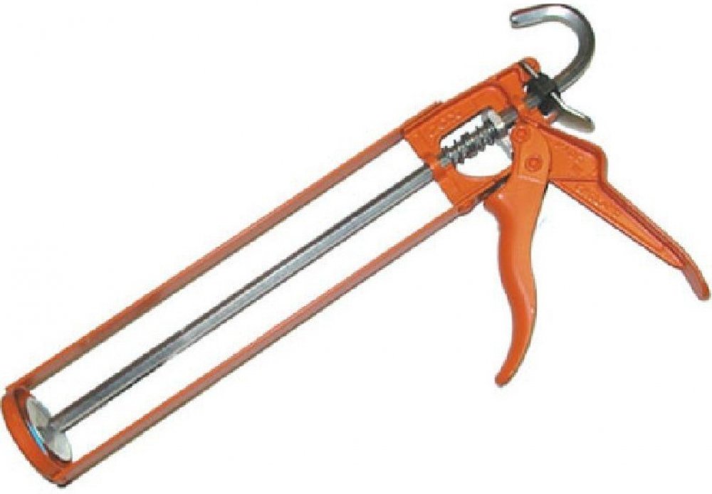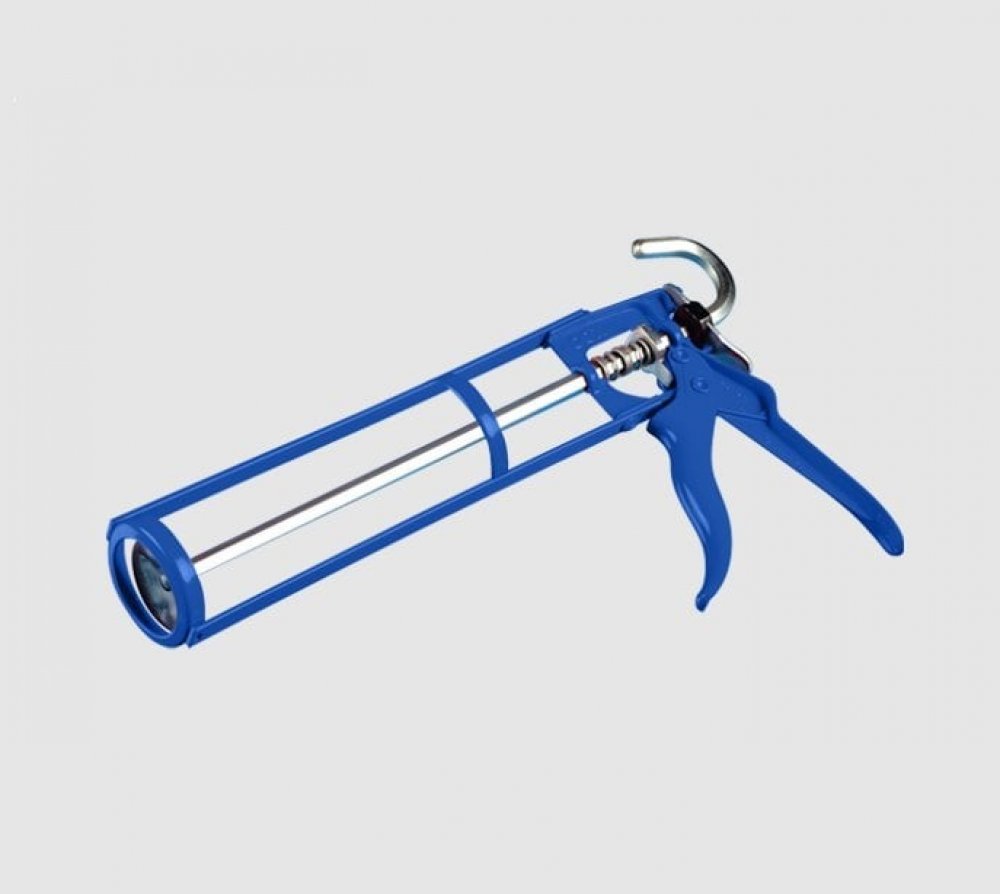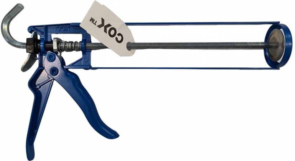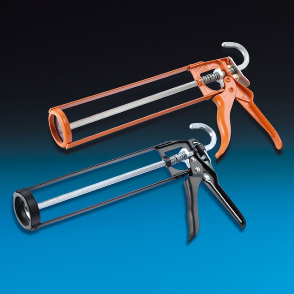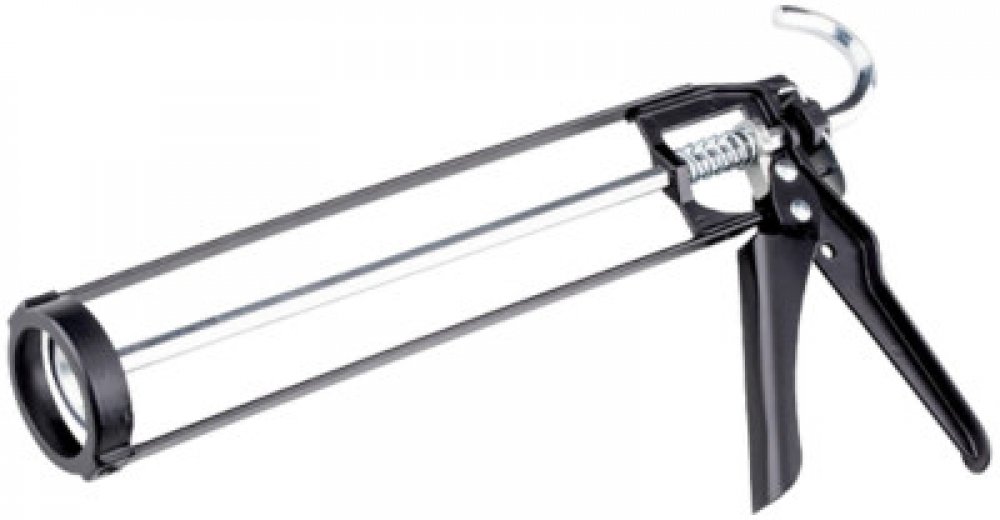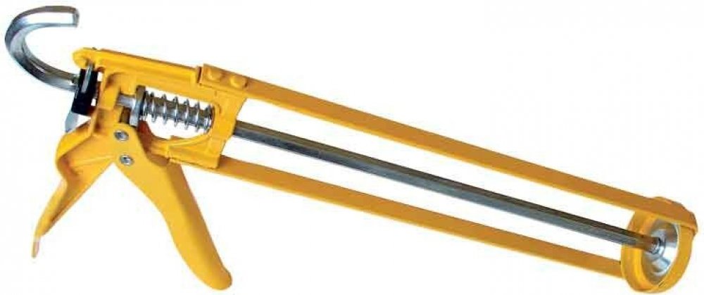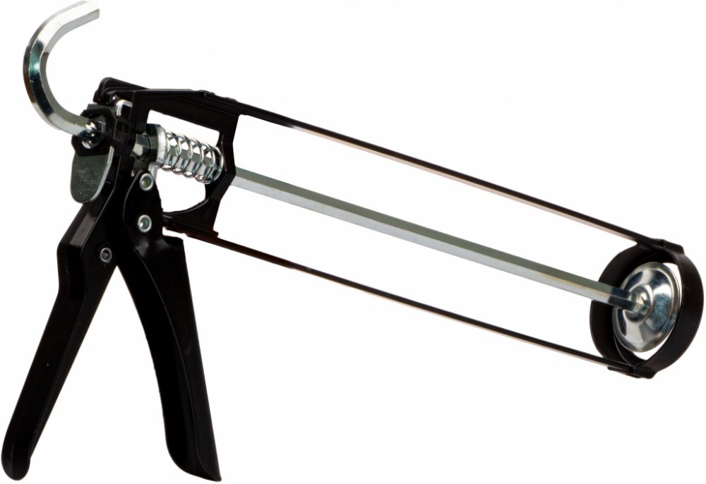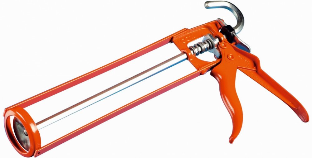 Rámová pistole pro aplikaci vytlačování tmelů nebo lepidel z kartuší. Výtlačná pistole rámová Den Braven (HKS 12) černá určená pro aplikace tmelů nebo lepidel z PE a AL kartuší.