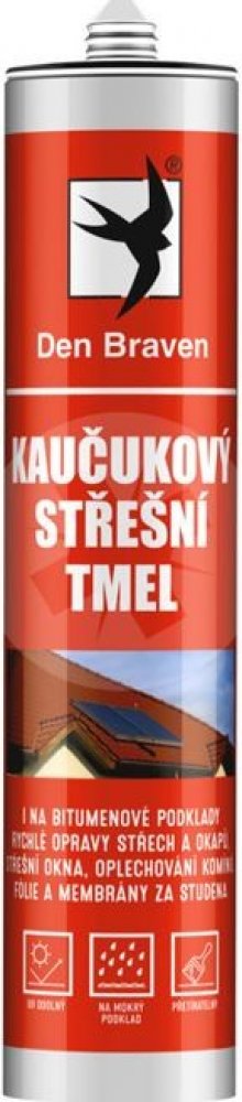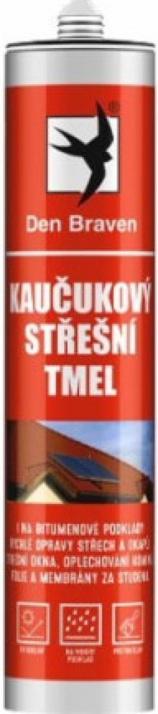 Tmel střešní kaučukový je jednosložkový těsnicí a lepicí tmel na bázi syntetické pryže. Slouží k utěsňování spár mezi zdivem, betonem, dřevem, sklem, některými plasty, okapy střech či bitumenovými podklady. Vhodné pro rychlé opravy střech a okapů. Lepení v interiérech i exteriérech budov. Lze aplikovat i na vlhký podklad, přetíratelný i syntetickými barvami (doporučujeme předem otestovat). Různé v...