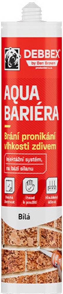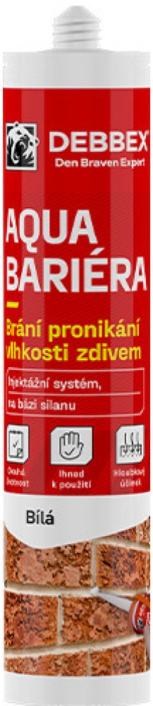 DEN BRAVEN DEBBEX aqua bariéra, injektážní krém proti vzlínající vlhkosti, snadná aplikace, hydrofobní impregnace zdiva a betonu. Injektážní krém AQUA BARIÉRA je horizontální bariéra ve formě krému proti vzlínající vlhkosti stěn a hydrofobní impregnace betonu, železobetonu a zdiva. Díky krémové konzistenci je aplikace bariéry snadná a připravená k okamžitému použití. Charakteristika injektážní kré...