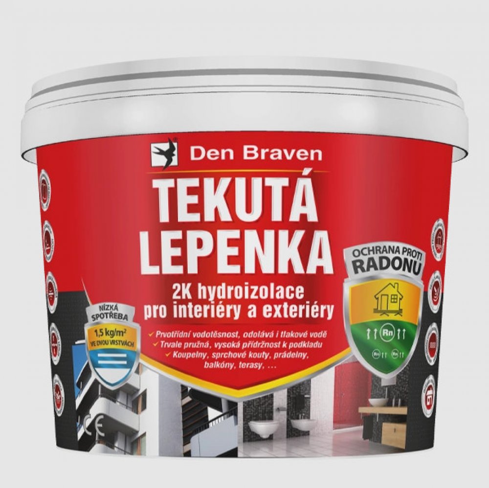 Tekutá lepenka 2K hydroizolace je dodávána v poměru 3:1 (hmotnostní poměr suchá B a tekutá A). Příprava probíhá k postupným vmícháváním suché složky B do tekuté složky A s přidáním vody do max. 5 %. Mícháme ručně nebo strojně s malým počtem otáček cca 250 otáček/minuta, dokud směs není kvalitně zhomogenizována. Při strojním míchání nechte krátce odstát a pak promíchejte od spodu zednickou lžíci nebo jiným nástrojem, aby se uvolnily bubliny. Na připravený podklad nanášíme štětcem nebo válečkem, nejméně ve dvou vrstvách. Vrstvy nanášíme tzv. křížovou metodou. 1. vrstva zleva doprava a 2. vrstva shora dolů (nebo naopak). Rohy a kouty vyztužíme dilatační páskou, která se vkládá do první vrstvy. Podkladní vrstva musí být dostatečně zatuhlá cca po 12 hodinách pro zdivo, 24 hodin pod obklady a dlažby.