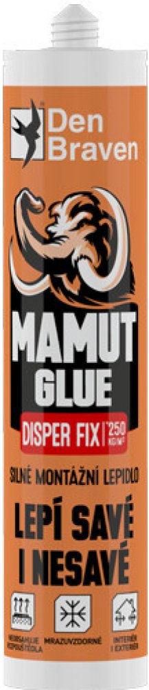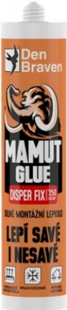 Hledáte silné montážní lepidlo skoro na všechno? Rozšířili jsme Mamutí rodinku o dalšího člena MAMUT GLUE Disper Fix. Kvalitní, rychlé a spolehlivé lepidlo. Využijete v dílně, domácnosti, garáži nebo i na pracovišti. Lepí většinu materiálů jako je dřevo, beton, kov, kámen apod.