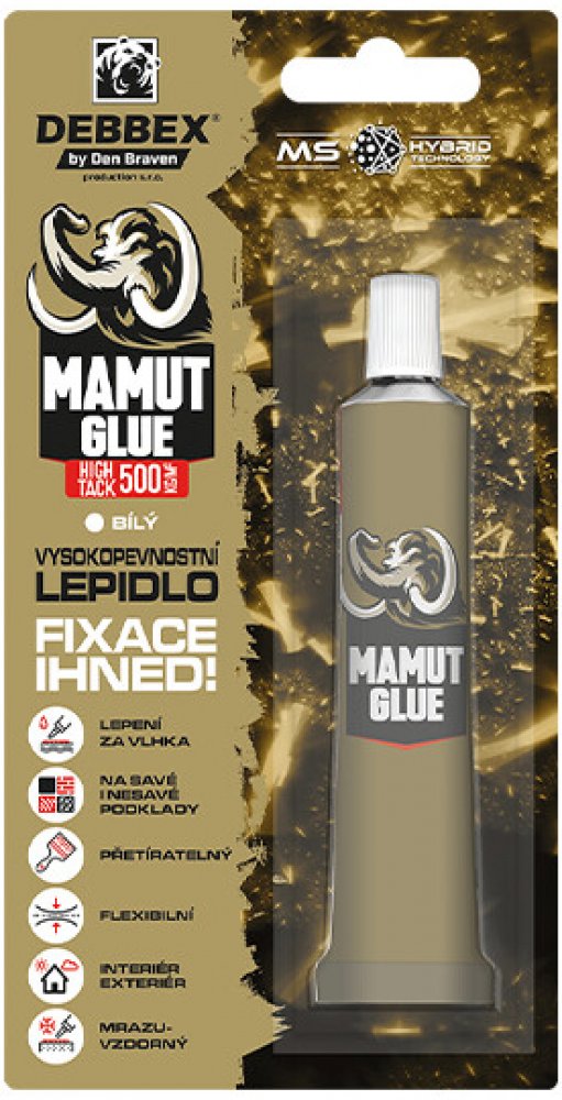 MAMUT GLUE HIGH TACK je nejznámějším a nejpoužívanějším kusem z mamutí rodiny. Jeho největší výhodou je okamžitá fixace 500 kg/m2. Využijete ho všude tam, kde potřebujete něco rychle přilepit a nemůžete předmět z jakýchkoliv důvodů zatížit, než lepidlo vytvrdne. S tím souvisí jeho tužší konzistence. A již patnáct let stoupající popularita.