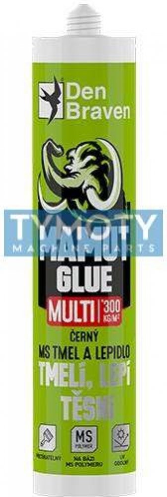 Moderní vysokopevnostní lepidlo na bázi MS polymerů s možností tmelení. Lepidlo Mamut Glue Den Braven Multi 25 ml černý je vysokopevnostní lepidlo na bázi MS polymerů s možností tmelení. Vytvrzuje vulkanizací vzdušné vlhkosti, vytváří vysokopevnostní, elastický spoj.