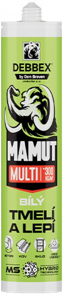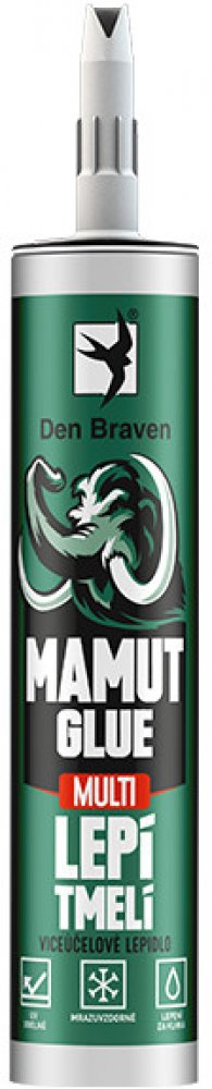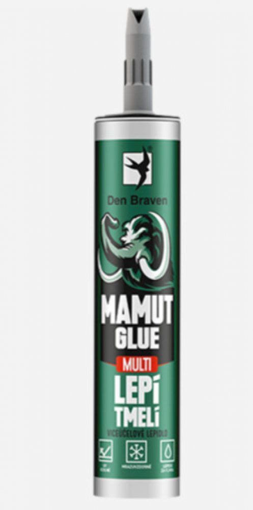 Den Braven Mamut Glue MULTI je moderní vysokopevnostní lepidlo na bázi MS polymerů s možností tmelení, které vytvrzuje vulkanizací vzdušné vlhkosti a vytváří vysokopevnostní, elastický spoj. Je navrženo pro lepení a tmelení široké škály materiálů včetně zrcadel, podlahových lišt, schodnic, parapetů, nerezové oceli, hliníku, mědi, olova, skla, PVC, betonu, keramiky, dřeva, zdiva a sádrokartonu. Vhodné pro použití v interiéru i exteriéru na savé i nesavé podklady.