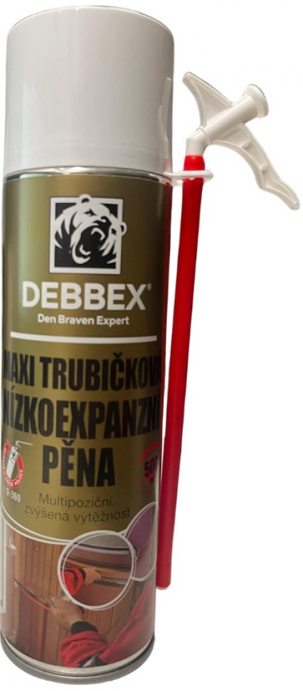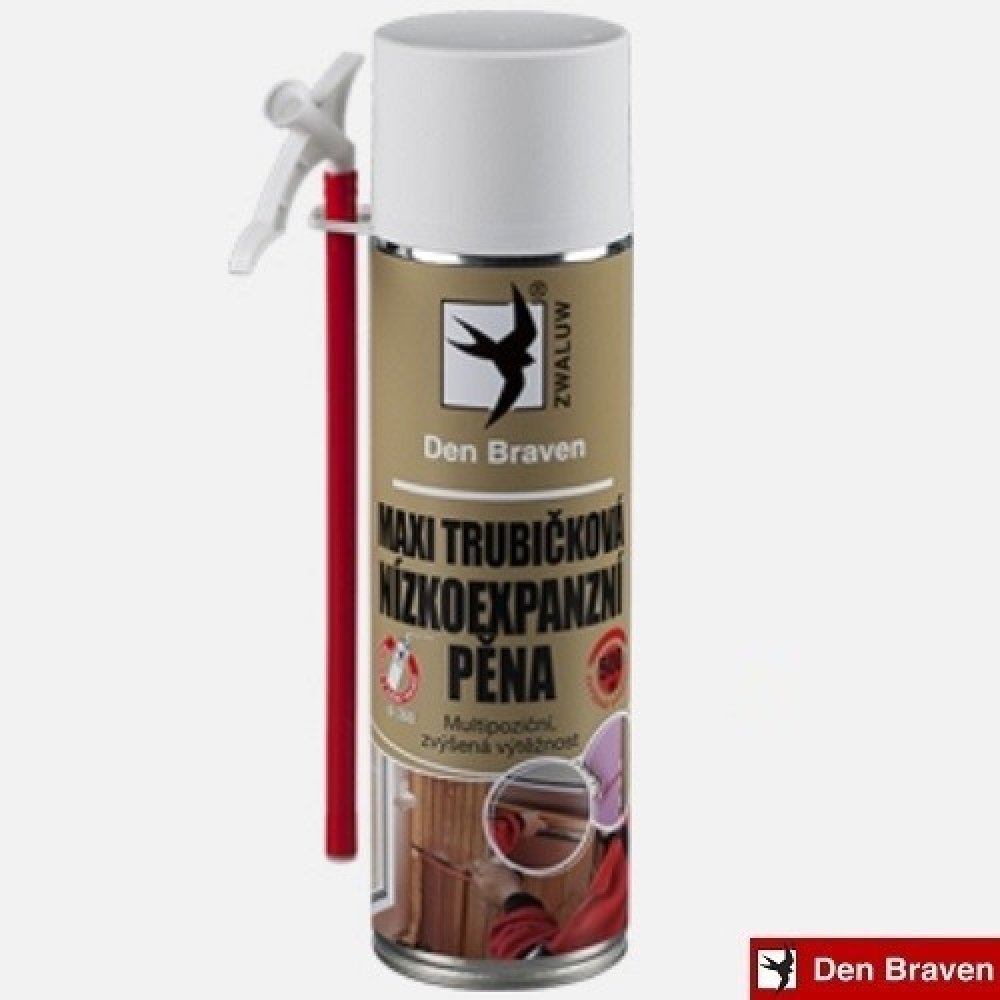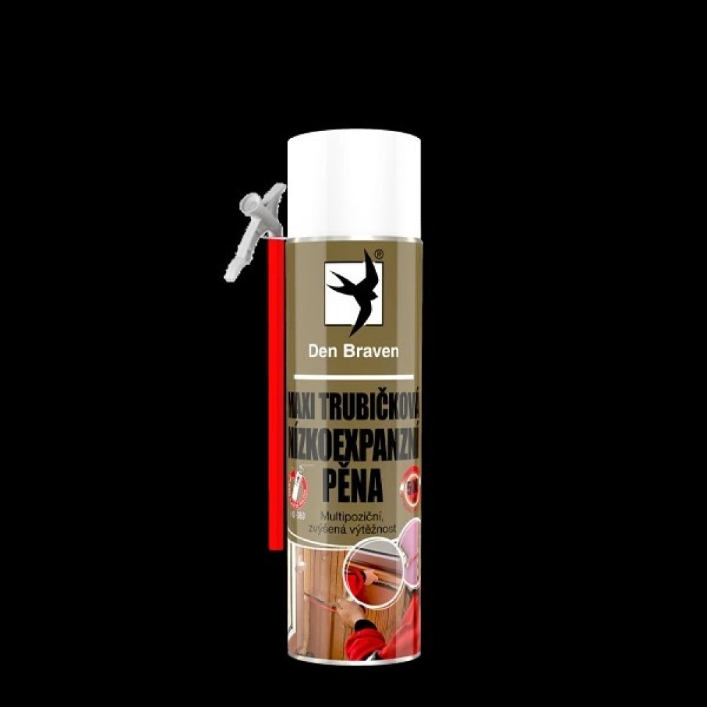 Maxi trubičková nízkoexpanzní pěna Den Braven, 500ml je speciálně vyvinuta v Den Braven laboratořích pomocí nejmodernějších technologií, aby splňovala nejnáročnější požadavky maximální výtěžnosti a malé expanze, kvalitní a pravidelné struktury, flexibilním použitím, vysokým útlumem hluku a pohlcováním vibrací.