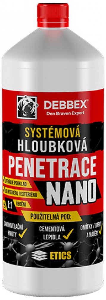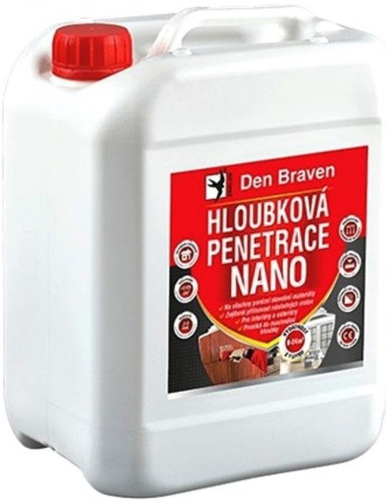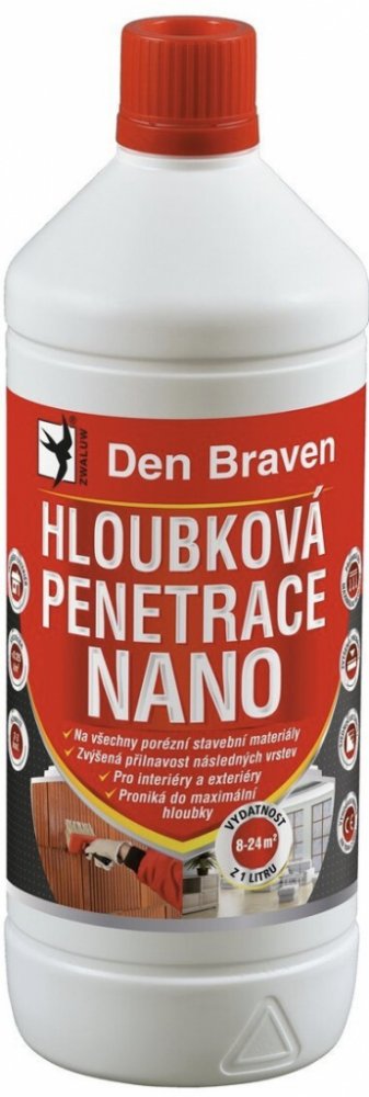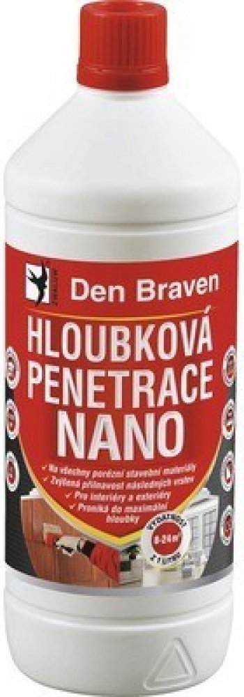 Jednosložková nízkoviskózní kapalina s hloubkovým penetrujícím účinkem na savé podklady. Hloubková penetrace Den Braven NANO 1 l je jednosložková nízkoviskózní kapalina s hloubkovým penetrujícím účinkem na savé podklady. Speciální hloubková penetrace je vodou ředitelná kompozice na bázi modifikovaného styren-akrylátového kopolymeru s nano-částicemi, který umožňuje vysoký stupeň kotvení na anorgani...