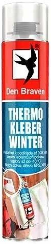 Thermokleber Winter je jednosložkové nízkoexpanzní polyuretanové lepidlo, ideální pro použití při očekávaných poklesech nočních teplot pod 0°C, kdy již není možné používat cementová lepidla pro lepení a montáž izolačních systémů ETICS.PoužitíVhodné i při vyplňování spár mezi tepelně izolačními deskami z materiálů EPS, XPS a z minerálních vláken (tzv. vaty) a při lepení soklového EPS-P nebo XPS.VlastnostiMrazuvzdorné – použitelnost do -10 °CZ jedné dózy lze přilepit až 14 ks polystyrenových desekBroušení a kotvení desek již po 2 – 6 hodinách od nalepeníVysoká úspora času, snadná manipulaceNižší nároky na skladovací prostory a přepravuCelková úspora až 50% nákladů na lepeníVýborná přilnavost k betonu, kameni, omítce, zdivu, polystyrenu, neměkčenému PVC, hrubě opracovanému dřevu, OSB deskám, cementovláknitým a sádrovláknitým deskámZvýšení izolačních vlastností fasády, oproti fasádám lepených cementovými lepidlyBalení: 750 ml