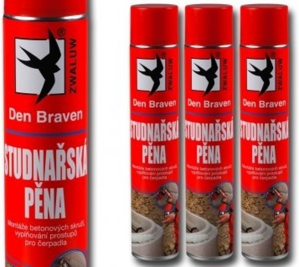 Pistolová studnařská pěna Den Braven. Studnařská pěna je vhodná pro lepení a těsnění betonových skruží nebo například rozvodných a kontrolních šachet. Pěna je určena pro přímý styk s vodou. Registrujete-li se, získáte trvalou slevu 5 %.