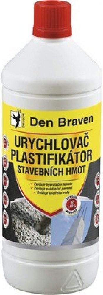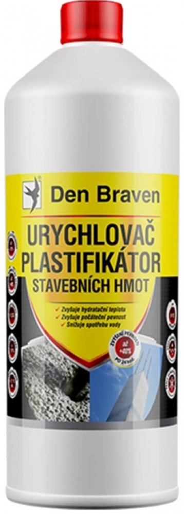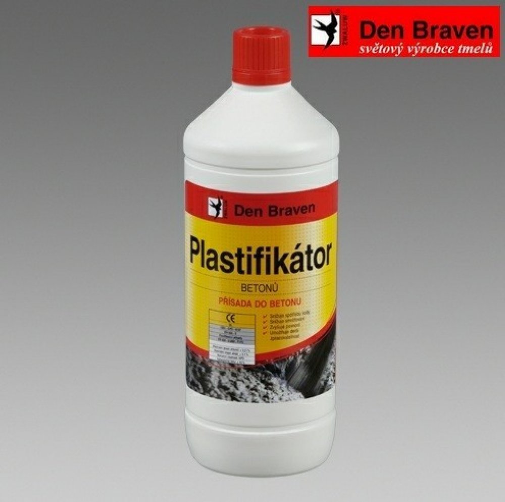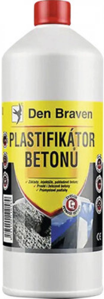 Plastifikační přísada do betonových směsí se snazším zpracování betonových směsí. Plastifikátor betonů Den Braven 1 l je plastifikační přísada do betonových směsí umožňující snazší zpracování betonových směsí, jejich transport a následné ukládání. Nezvyšuje obsah vzduchu ve směsi, neovlivňuje provzdušnění dosažené vhodnou provzdušňovací přísadou.
