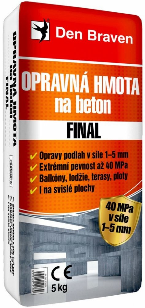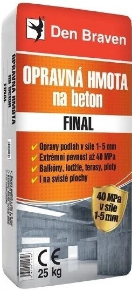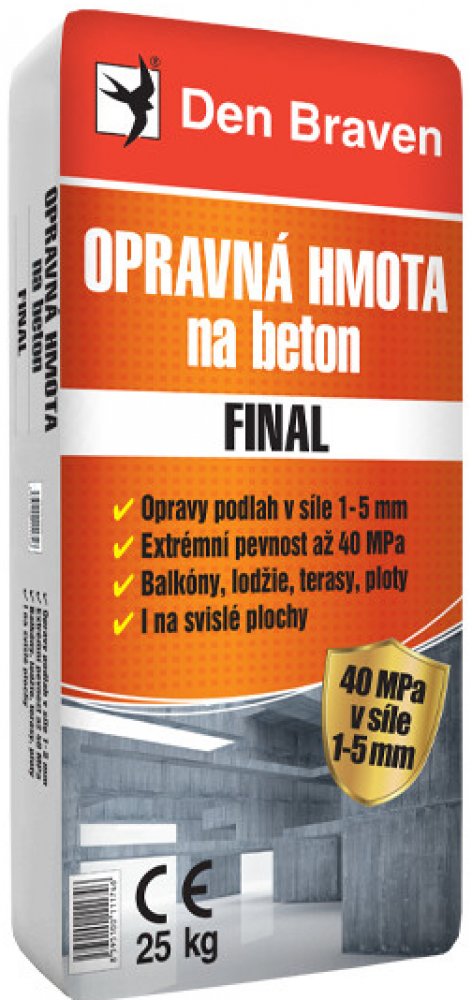 Sanační finální opravná stěrka na beton na bázi cementu, jemných plniv a modifikujících přísad. Je dodávána jako předem namíchaná suchá směs, která se míchá s vodou přímo na stavbě. Vytváří trvale pevný povrch srovnatelný s původním povrchem. Ideální pro tenkovrstvé opravy betonových a železobetonových konstrukcí, lokálních poškození balkónů, lodžií, plotů, prefabrikátů apod. Nestéká a proto je vhodná i na svislé plochy.