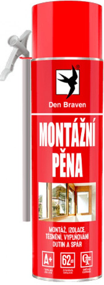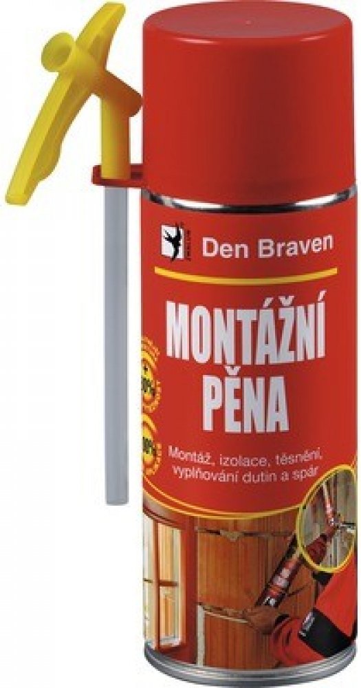 Montážní pěna je vhodná pro montáže dveřních zárubní a okenních rámů, vyplňování dutin, montážních prostorů mezi panely, zděnými příčkami, stropem a podlahou.