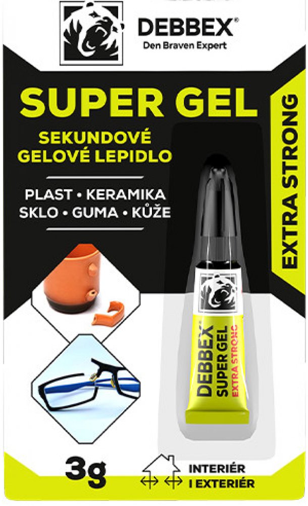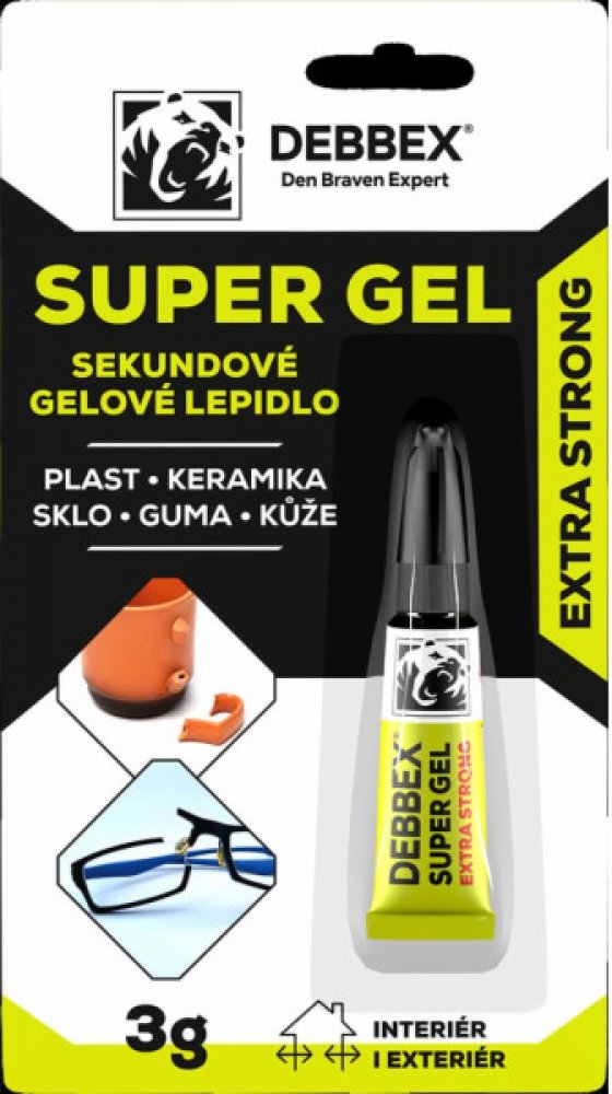 Sekundové lepidlo gelového typu, které okamžitě lepí materiály jako keramika, kůže, plast, guma nebo sklo. Ideální na lepení savých materiálů, protože gelová konzistence nevsakuje do podkladu. Vytváří trvalý a pevný spoj. Dávejte pozor na kůži rukou, kdy kontakt s pokožkou okamžitě spojuje a naleptává. S lepidlem pracujte velice opatrně a dávejte pozor na okolní materiály a podklady.