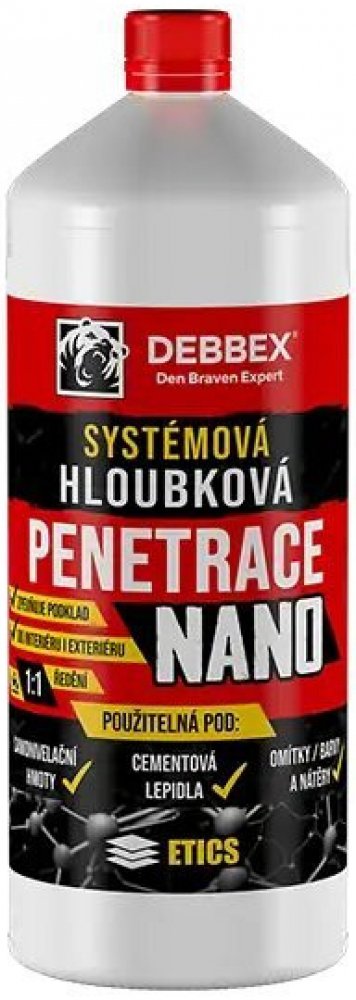 Vysoce kvalitní systémová hloubková penetrace s nano částicemi pro sjednocení savosti podkladu a snížení nasákavosti před lepením obkladů a dlažeb, před vyrovnáváním podlah samonivelačními hmotami, k lokálním opravám podkladních betonů, betonových podlah, cihelného zdiva a omítek nebo před nátěry zdiva či fasád. Má vyšší penetrační účinnost než běžné styrenakrylátové penetrace, proniká do větší hl...