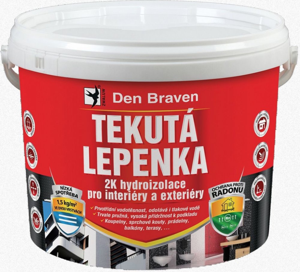 Dvousložková hydroizolační hmota vytváří trvalou vodotěsnou membránu a slouží k hydroizolaci pod obklady a dlažby v koupelnách, na balkonech, terasách, ve sklepech a dalších. Tento trvale pružný hydroizolační nátěr je určený rovněž k vyhotovení izolační vrstvy na zděných, betonových, železobetonových konstrukcích a také izolaci lehčených betonů, potěrů, mazaniny, omítek, sádrokartonu a dalších mat...