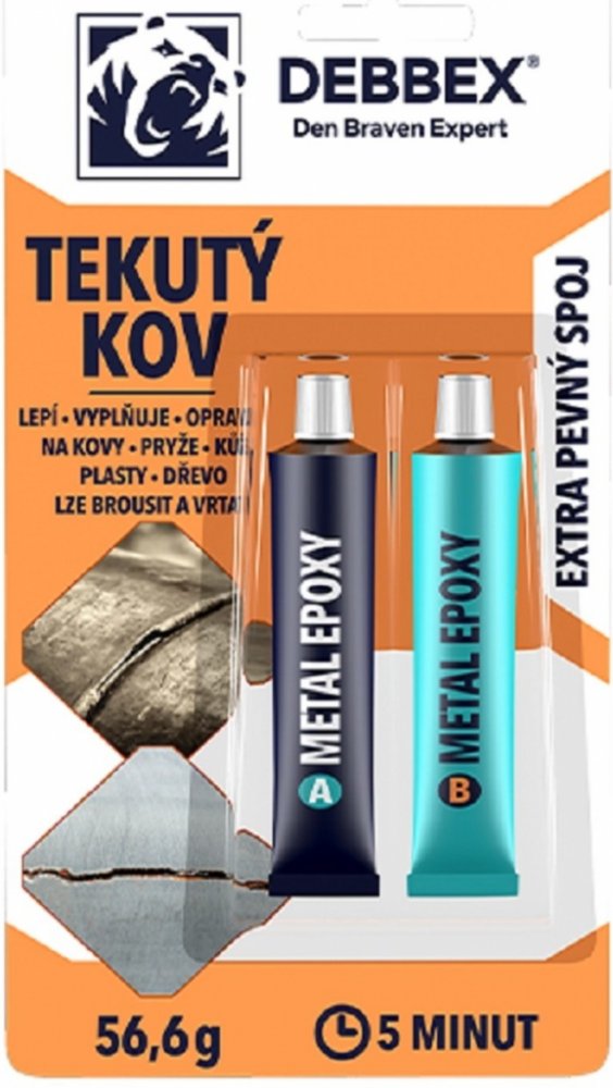 Rychletuhnoucí dvousložkové epoxidové lepidlo především na kovové materiály, ale také na pryže, kůže, plasty nebo dřevo. Po vytvrzení vytváří pevný spoj tmavě šedé barvy. Lze jej pilovat, brousit a vrtat. Vyznačuje se nízkým zápachem, silným lepením a snadným použitím. Je odolný vůči vodě, olejům, kyselinám a zásadám.