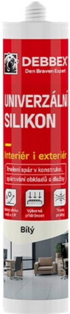Jednosložkový acetátový silikonový tmel. Jedná se o silikonový tmel s univerzálním využitím vhodný do interiéru i do exteriéru. Je odolný vůči povětrnostním podmínkám a UV záření díky čemuž jej lze použít jak k utěsnění spár a lepení průmyslových prvků tak k ukotvení a lepení prvků v domácnosti. Použití Sklenářské práce, tmelení / těsnění spár v domácnosti Tmelení lakovaných a glazovaných povrchů, skla a keramiky Tmelení spár v budovách, ocelových konstrukcí ve stavebnictví, průmyslu apod. Vlastnosti Nízkomodulový, nepřetíratelný Trvale pružný, odolný vlhku, vodě, povětrnostním vlivům a UV záření Vysoká přilnavost na nesavé materiály a jejich vzájemné kombinace Barva: bílá Tepelná odolnost: -50°C až 120°C Doba vytvrzení: 24 hodin (na omak do 15 min.)