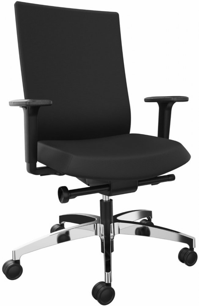 . . DENIOS kancelářská otočná židle se synchronní mechanikou. . synchronní pohyb sedáku a opěradla. . boční nastavení protitlaku opěradla pomocí ručního kola. . synchronní pohyb lze zaaretovat 4násobně. . výškově nastavitelné polstrované loketní opěrky s robustním plastovým vnějším pláštěm. . nastavitelná hloubka sedáku a sklon sedáku - nastavení sklonu sedáku s nakloněním celé horní části židle až -4 stupně dopřed. . nastavitelné loketní opěrky. . nastavitelná výška sedáku. . hliníková křížová noha. .