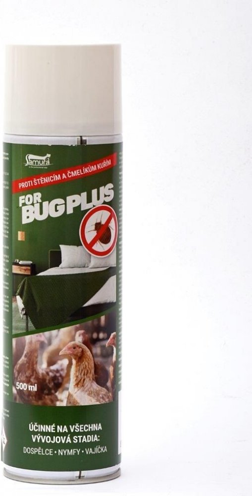 For Bug Plus proti štěnicím a čmelíkům kuřím je postřik ve formě insekticidního a akaricidního aerosolu k přímému použití. Srej proti štěnicím a čmelíkům - For Bug Plus aplikujte do všech míst, kde se mohou štěnice (Cimex lectularius) ukrývat, na rámy postelí, sokly, nohy postelí, na noční stolky atd. Postřik na štěnice aplikujte přímo do trhlin, spár a štěrbin na porézní i neporézní povrchy prot...