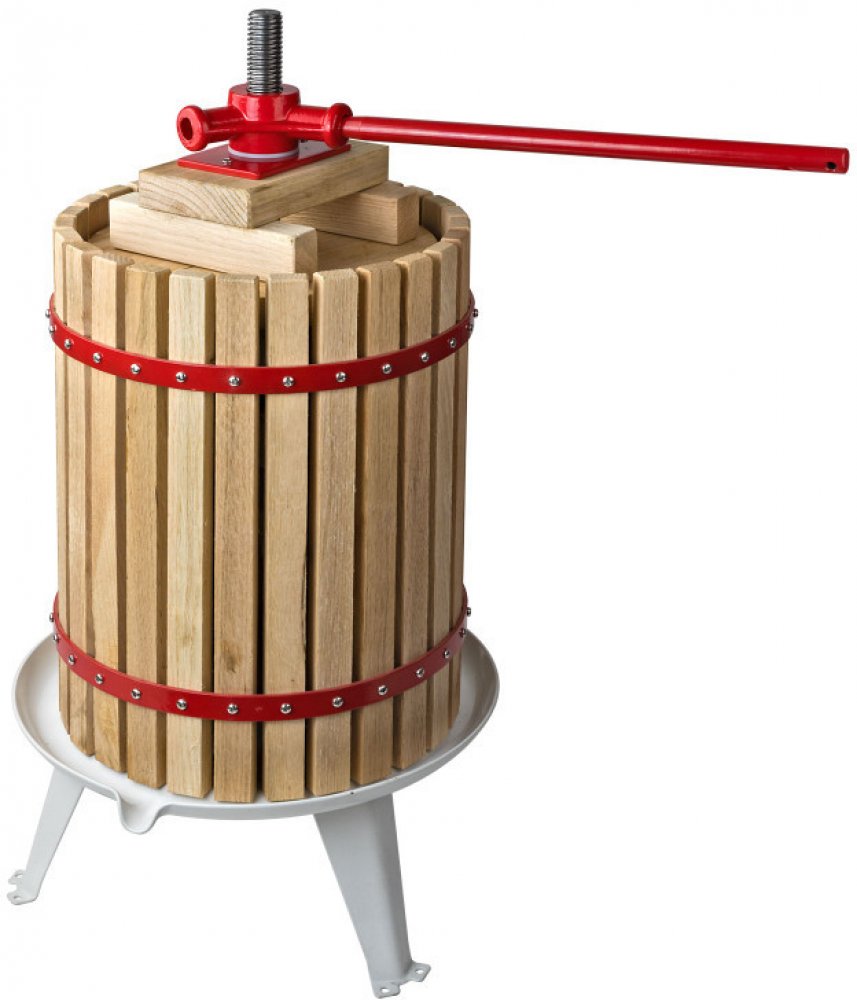 Lis na ovoce s mechanickým převodem, s robustním ocelovým vřetenem a sběrnou miskou, která je lakována zdraví nezávadnou potravinářskou barvou. Přítlačné desky a lisovací koš z masivního bukového dřeva. Sběrná miska a nohy z oceli. Tříbodový držák otočné páky na vřetenu.