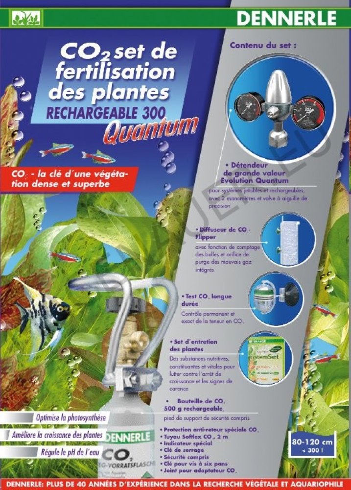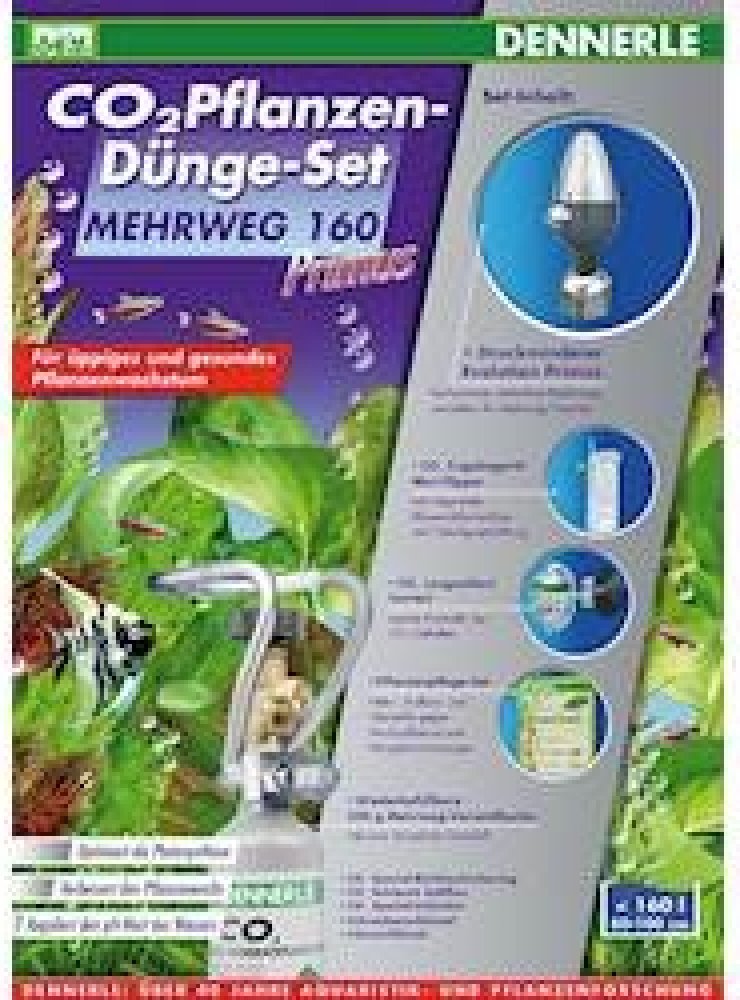 Obzvláště vhodný způsob dodávání CO2 pro velká akvária či akvária se zvýšenou potřebou CO2. Pro tyto účely nabízí firma DENNERLE opakovaně plnitelné lahve až do 2 kg.