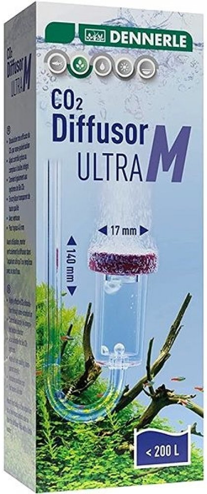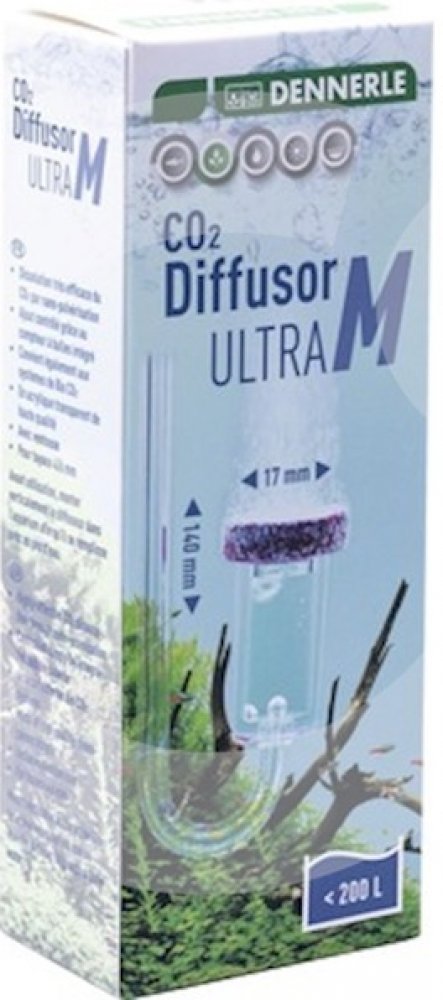 Dennerle nabízí řadu ultramoderních přídavných jednotek CO2 pod názvem „CO2 Diffusor Ultra“. Difuzéry jsou vyrobeny z průhledného akrylátu odolného proti rozbití. Díky tomu je s nimi mnohem bezpečnější manipulace než s konvenčními skleněnými difuzory a také jsou ideální například pro dětská akvária. Díky svému ultrakompaktnímu tvaru mohou být instalovány „neviditelně“ do akvária pomocí dodaného držáku. Přes jejich atraktivní vzhled však nejsou v akváriu nápadné. Nově vyvinuté membrány jsou vyrobeny ze speciálního slinutého materiálu s extrémně malými póry. Výsledná nano-atomizace přiváděného CO2 zajišťuje vysoce účinné a bezpečné rozpuštění této důležité rostlinné výživy v akváriu.