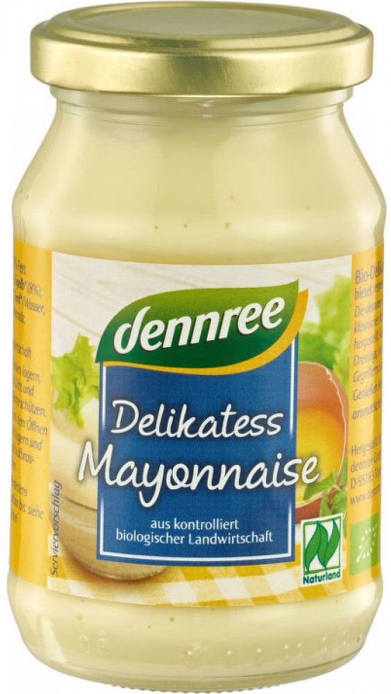 BIO majonéza s obsahem slunečnicového proteinu se smetanovou a jemnou chutí. Výborná je do vegeteriánských hamburgerů a k hranolkám.Slunečnicový olej* 80 %, VAJEČNÝ žloutek* 8 %, voda, ocet*, cukr*, HOŘČICE* (voda, HOŘČIČNÁ semínka*, ocet*, mořská sůl, koření*, bylinky*), mořská sůl. *produkt kontrolovaného ekologického zemědělstvílt;pgt;lt;stronggt;Kalorická hodnota/energie (na 100ml):lt;/stronggt;2964kJ/721kcal. Tuky: 79 g. z toho nasycené mastné kyseliny: 9,1 g. Sacharidy: 1,9 g. z toho cukry: 1,9 g. Bílkoviny: 1,3 g. Sůl: 1 glt;/pgt;lt;pgt;lt;stronggt;Skladování:lt;/stronggt; Skladujte v suchu, chraňte před světlem a teplem. Po otevření skladujte v ledničce a brzy spotřebujte.lt;br /gt;lt;stronggt;Legislativní zařazení:lt;/stronggt; lt;/pgt;