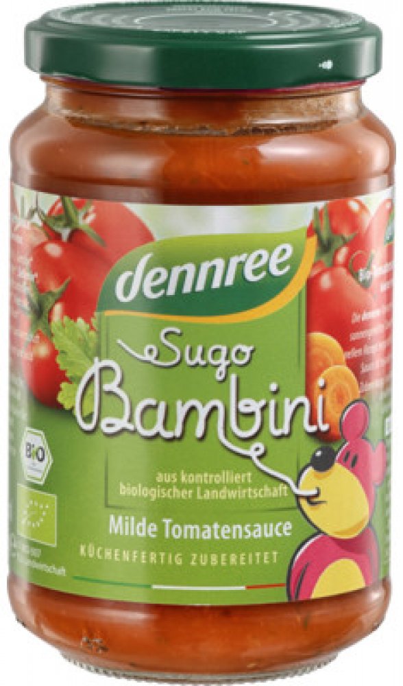 Rajčatová omáčka dennree Sugo Bambini se vyrábí z na slunci vyzrálých rajčat a zeleniny podle tradiční receptury. Tato ovocná, jemně kořeněná omáčka je oblíbená zejména u dětí. Užijte si jemnou, ovocnou chuť.