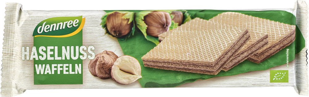 Krémové vafle vyrobené z organické pšeničné mouky jsou pečené, křupavé a naplněné jemným organickým lískooříškovým krémem.