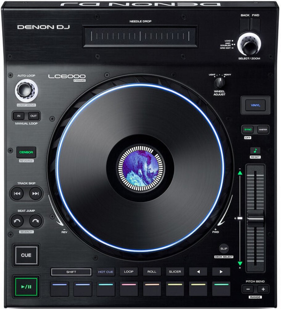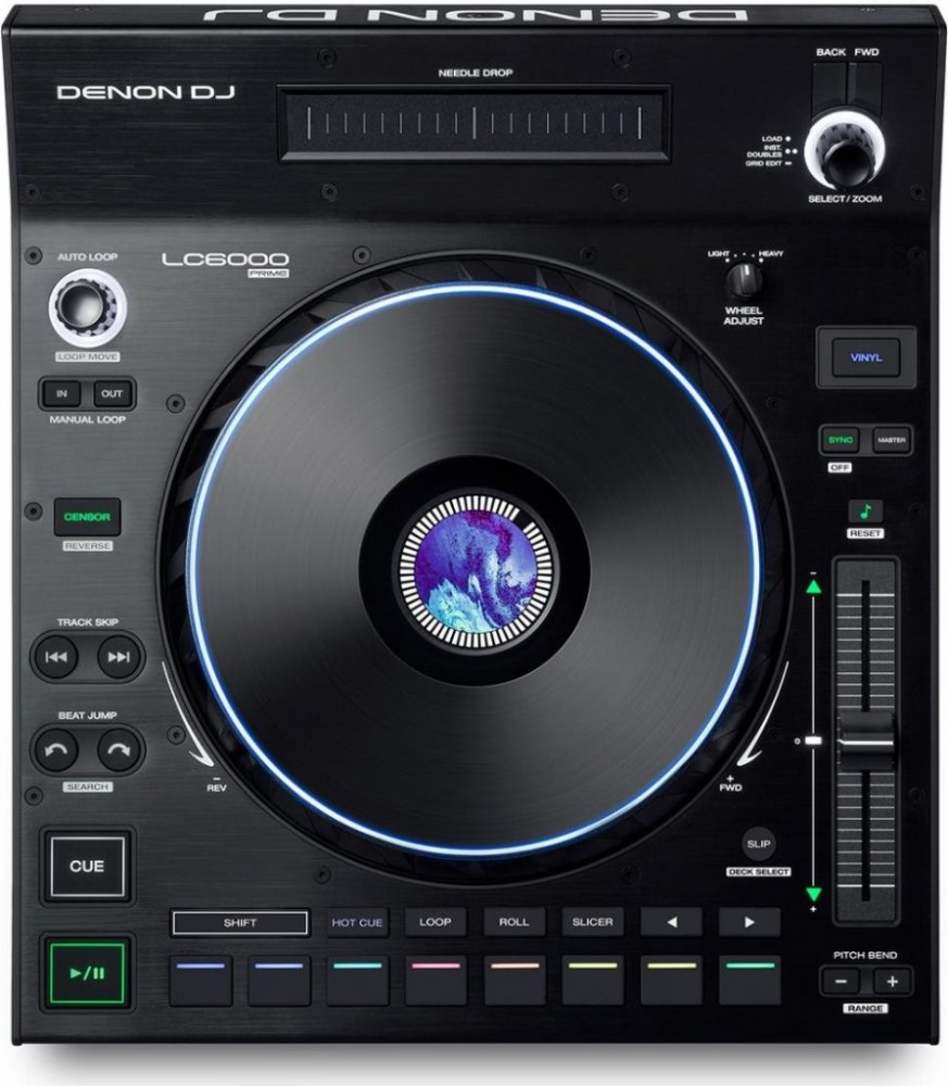 Klíčovým prvkem Denon DJ LC6000 Prime je 8,5‘‘ dotykový jog wheel s centrálním HD displejem pro zobrazení grafiky, vlastního loga a dalších informací o přehrávané skladbě a právě používaných funkcí.