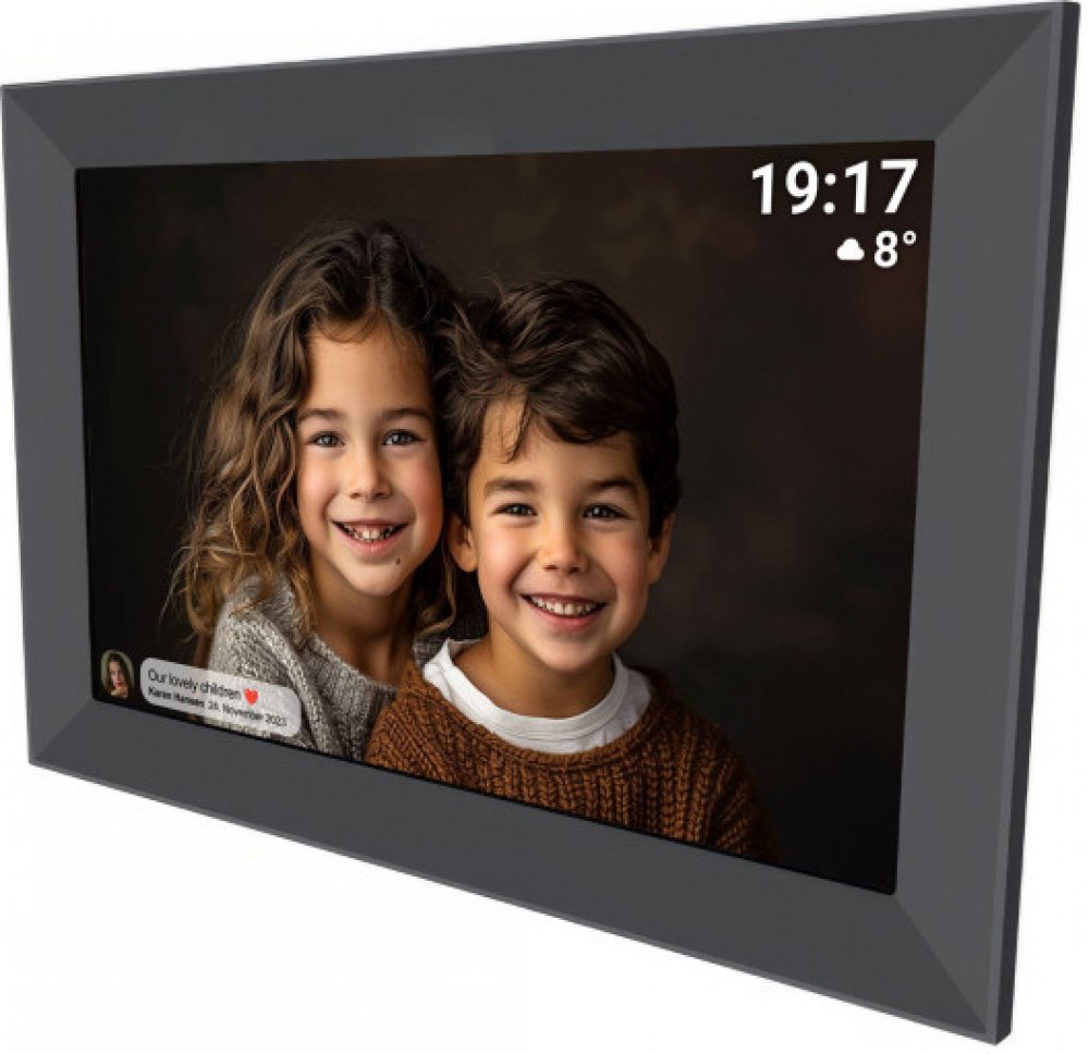 Discover the Smart 10.1" digital photo frame with HD IPS touchscreen and WLAN! Personalise the functions of the picture frame with the pre-installed FRAMEO software. Download the app to your smartphone to transfer pictures and videos to the photo frame. Friends and family can post directly to your photo frame. FRAMEO gives you control over your pictures. Decide for yourself who can send you pictures. Enjoy the high-resolution pictures on the touchscreen and save thousands of memories directly to the 16 GB memory.