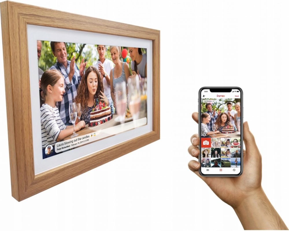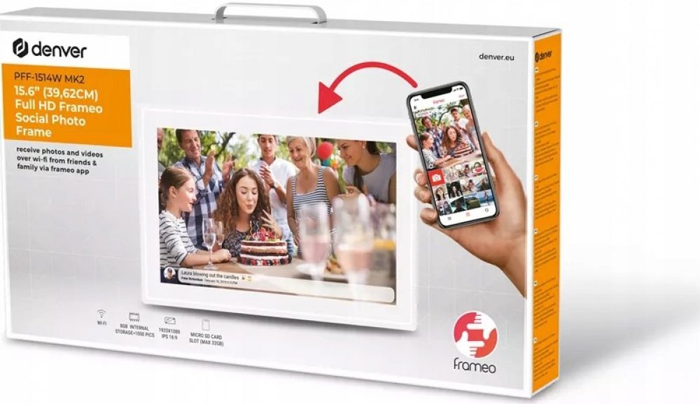 Inteligentní fotorámeček 15,6" se softwarem FRAMEO- Rozlišení: FULL HD 1920 x 1080 - Obrazovka IPS - Vestavěná 8GB paměť pro tisíce fotografií - Vkládání fotografií do rámečku pomocí aplikace FRAMEO - Přidávání textu k fotografiím - skvělý způsob sdílet fotografie – nový typ sociálních médií