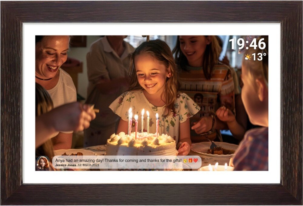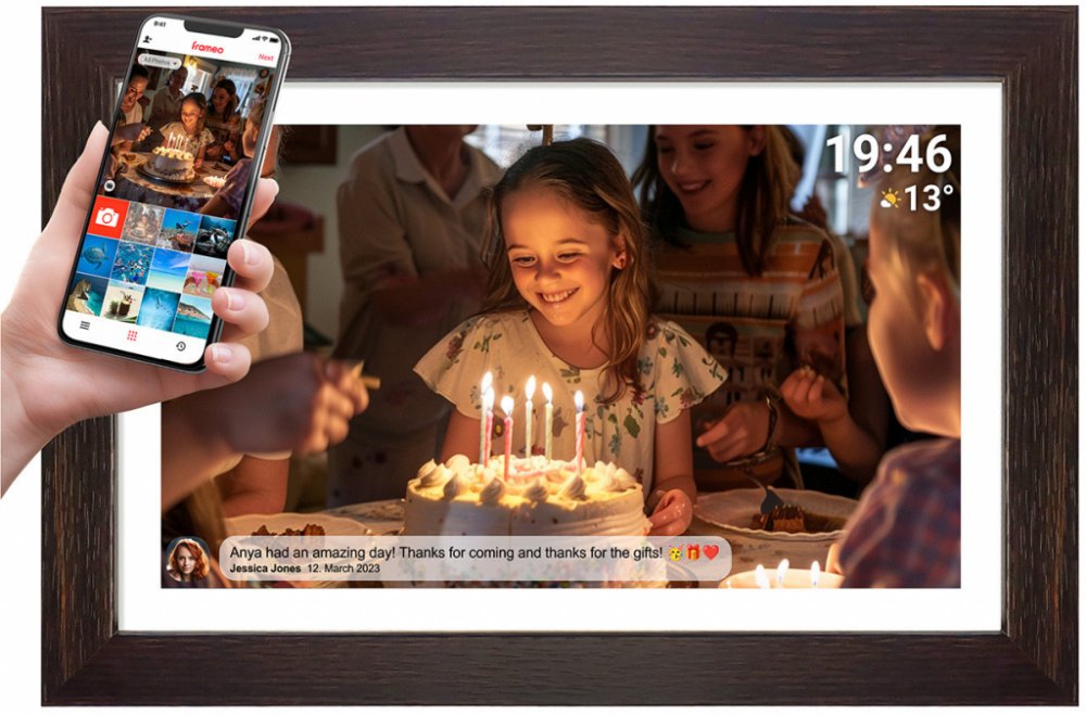 ✔ -Použití digitálního fotorámečku Frameo je velmi jednoduché. Stáhněte si aplikaci „Frameo“ do svého chytrého telefonu a propojte ji s digitálním fotorámečkem přes WiFi. Stojí za zmínku, že můžete sdílet své fotografie/videa a přidávat text, abyste mohli vyprávět příběh skrývající se za každým obrázkem. Tento digitální rámeček na fotografie umožňuje snadné sdílení okamžiků ze života s nejbližšími kdykoli.